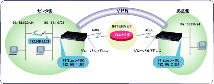 | 設定例 > FITELnet-F100対向でIPsec通信をする |