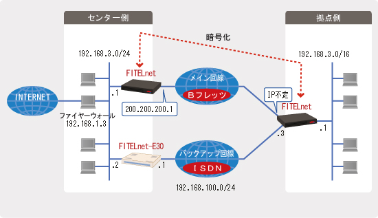 | 拠点側F100-ISDNインタフェースのIPアドレス | 192.168.100.3 |