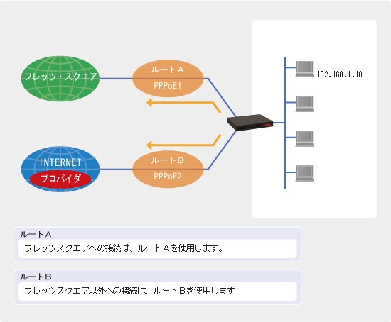 フレッツスクエアへの接続は、ルートAを使用します。