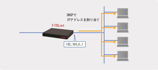 | *1: | DHCPクライアント端末のOSによっては、以下のようにDHCP応答パケットのTTL値を変更しなければ、正しくアドレスを取得できない場合があることが確認されています。 Router(config)# interface lan 1 Router(config-if lan 1)# ip limited-broadcast ttl 64 Router(config-if lan 1)# exit ※本コマンドは、下記のファームウェアで対応しています。 FITELnet-F100 V02.08(00)以降 FITELnet-F1000 V02.08(00)以降 FITELnet-F80 V01.02(00)以降 |