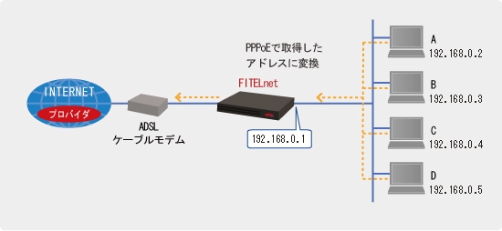 PPPoEインタフェースで、NAT+を使用するケースを考えます。