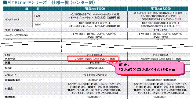 | 項目 | FITELnet-F1000(誤) | FITELnet-F1000(正) |