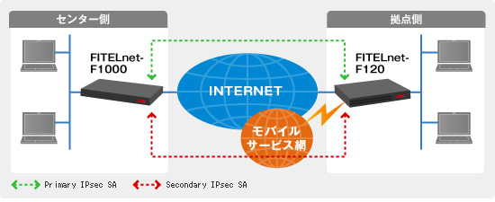 FITELnet-F120はモバイルカードに対応したブロードバンドルータで、モバイル回線をメインとしても、バックアップとしてもご利用いただけます。