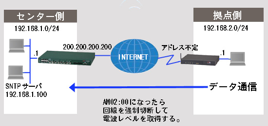 AM02:00 に回線を強制切断して、電波状態の監視を行う例です。