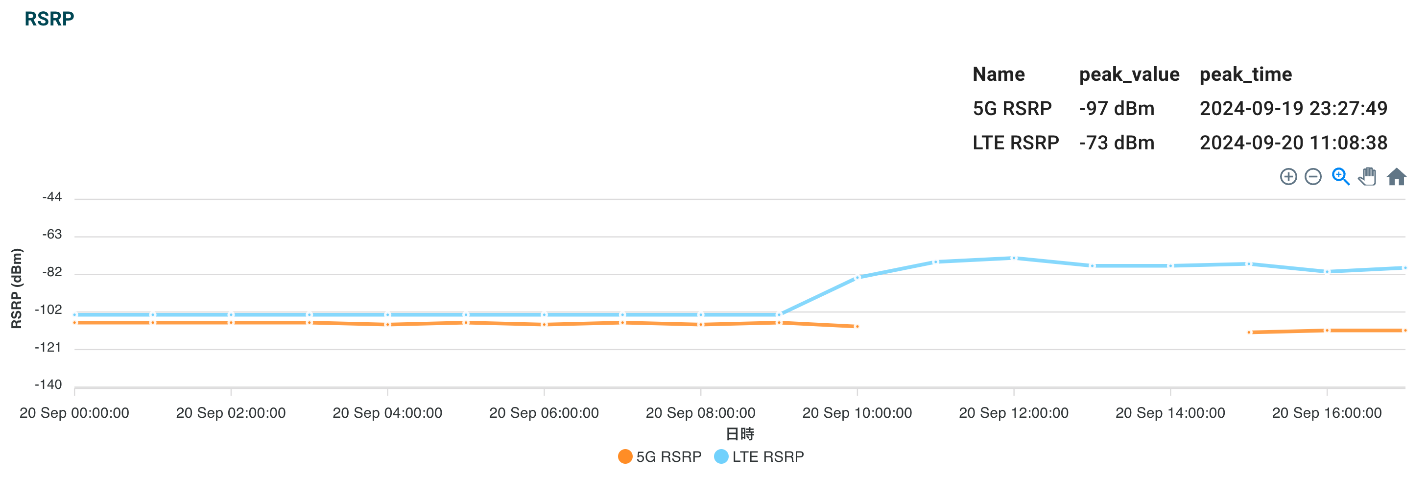 5GやLTEの電波状況をFITELnet F225のユーザインタフェース上で確認できるほか、筐体のLED表示によりシグナルレベルを確認することも可能です。また、Fらくねっと®での電波情報表示にも対応しています。