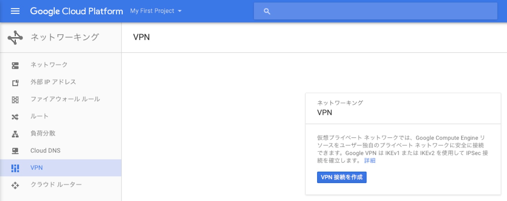 メニューの "VPN" を選択し、"VPN 接続を作成" をクリックします。