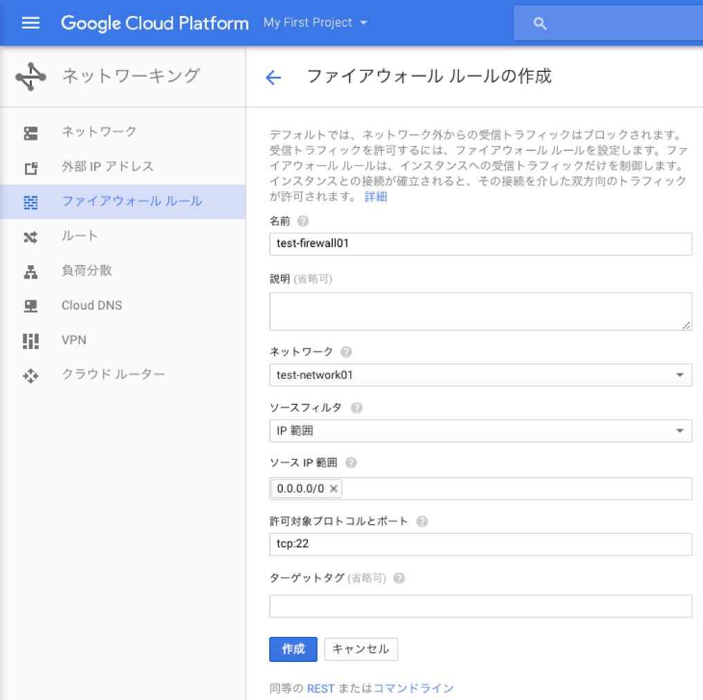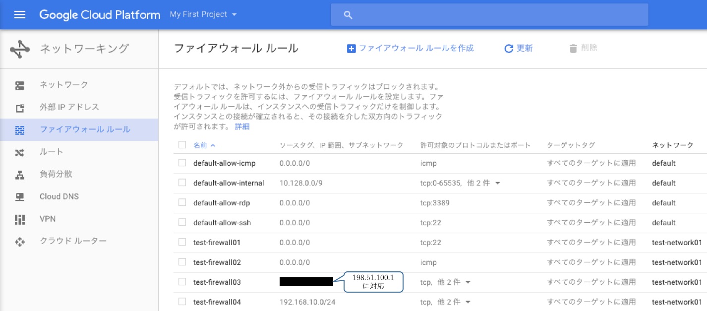 GCP ネットワークへ送信されるトラフィックのファイアウォール設定を行います。