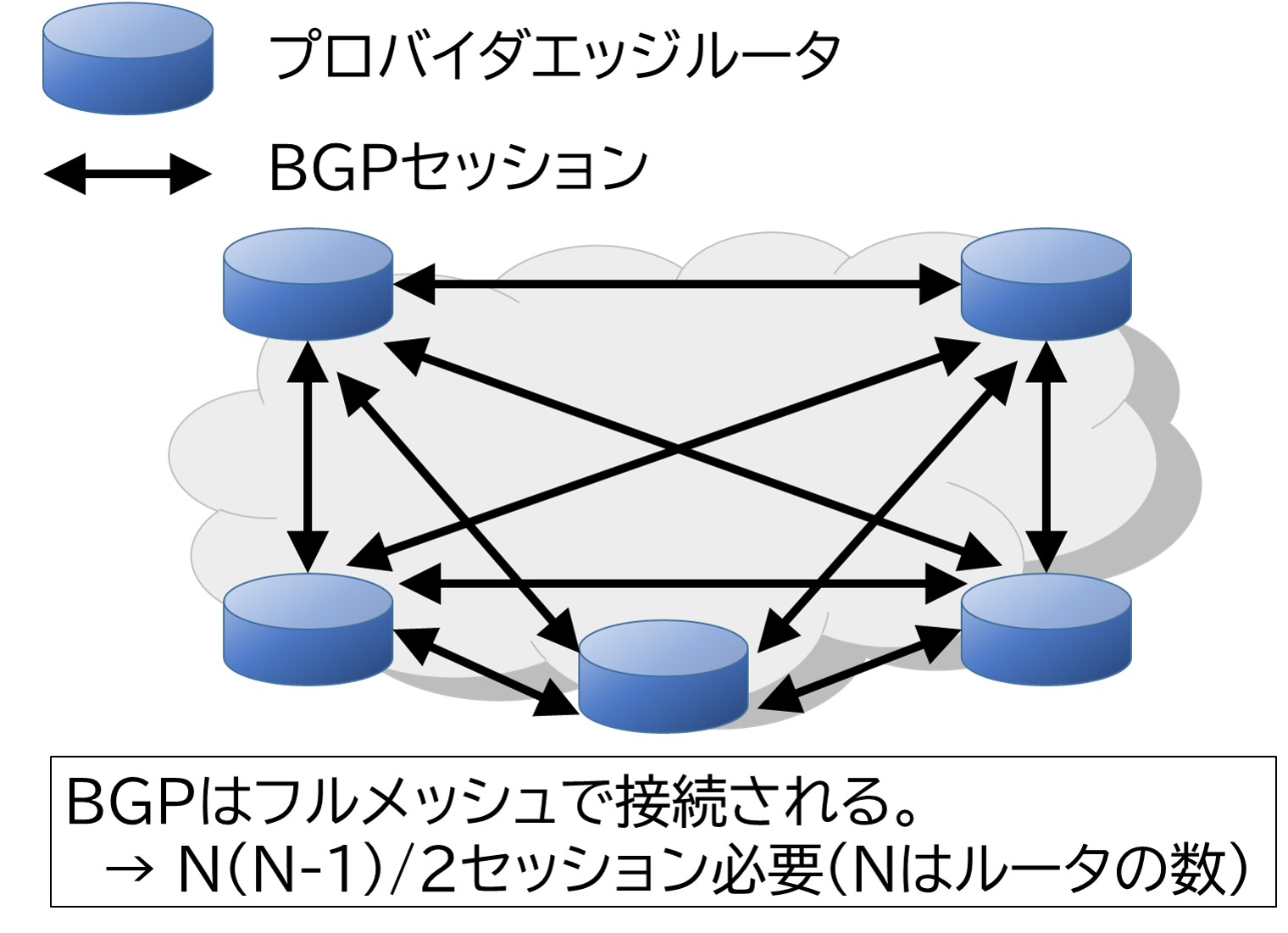 大規模なネットワークを構築・運用している通信事業者にとって、網の拡張性や安定性の確保は必須となっています。これまで通信事業者のバックボーンネットワークでは、BGPをフルメッシュで構築することによる通信網全体のパフォーマンス低下(BGPフルメッシュ問題)に対処するために、BGPセッションを集約するルートリフレクタを導入し、各ルータが保持すべきセッション数を減らすことで負荷を軽減していました。
