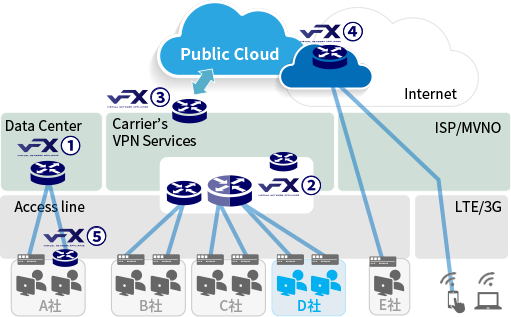 FITELnet vFXは、数多くの商用実績をもつFITELnet FX1の機能・性能・信頼性を汎用サーバ上で実現させる仮想アプライアンスです。
