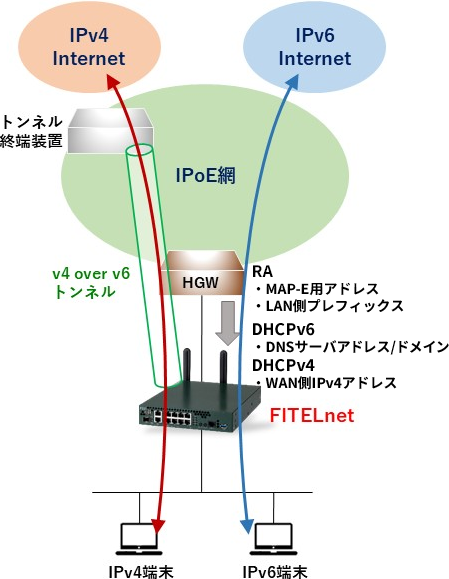 本設定例では、「IPv6オプション」に対応したMAP-E方式を利用します。