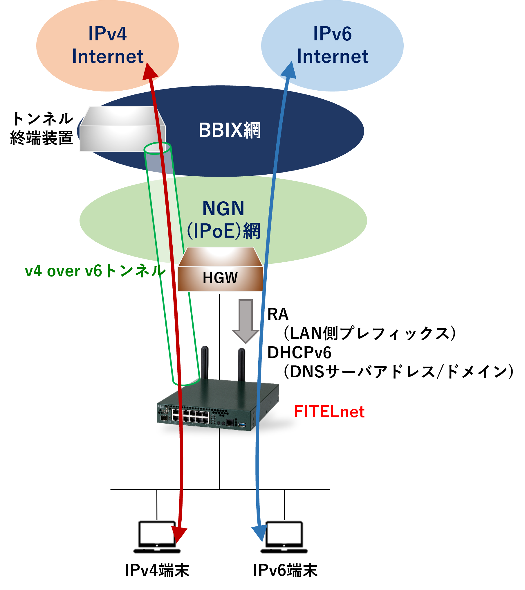 LAN側ではIPv4とIPv6をデュアルスタックで利用可能です。