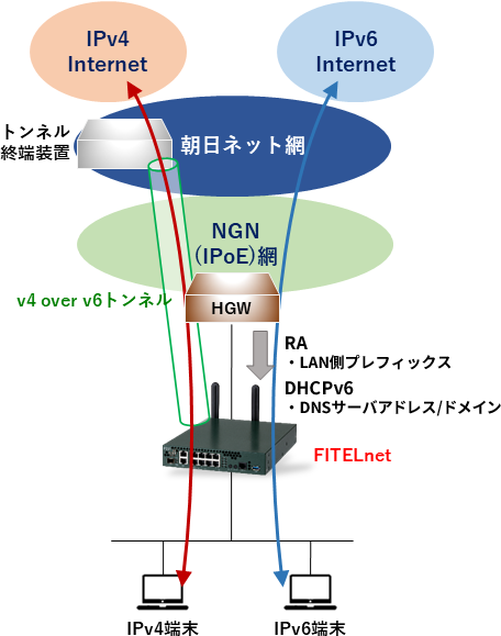 LAN側ではIPv4とIPv6をデュアルスタックで利用可能です。