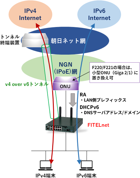 | F60/F200/F200Plus/F2200 | v6 コネクト IPv4 over IPv6 接続(IPIP) |