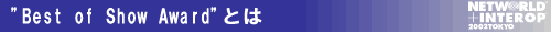 - "Best of Show Award"とは毎年全出展社の中からノミネートされた製品・サービスに対して厳正な審査のもとに最良の製品・サービスを選考するものです。