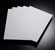 なめらかな表面性、軽量、各種印刷性、 加工性等から文具や通函・仕切り材などで活躍