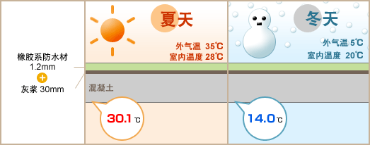 实施隔热施工后,夏天能有效抑制室外热量导致的室内温度上升,冬天能有效抑制室内 温度的散发,提高冷、暖气设备効率。