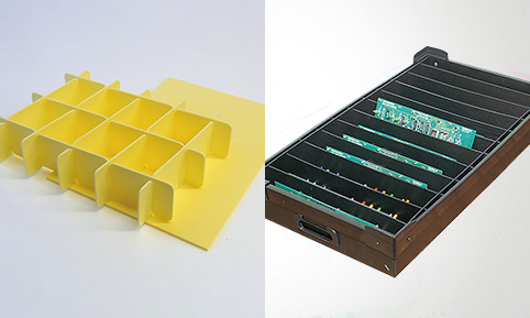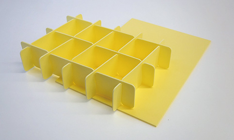 エフセルは薄くて軽く、丈夫であり、さまざまな製品の芯材として軽量化に貢献します。0.5mm厚の薄物から5mm厚まで対応可能です。