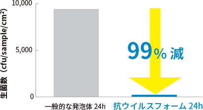 インフルエンザウイルス(エンベロープあり)、ネコカリシウイルス(エンベロープなし)両方のウイルスに対して99%減の抗ウイルス効果を発現します。