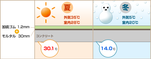 - 最外層で熱遮断し、スラブ躯体への温度影響を軽減してヒビ割れや破損を防止し、建物の耐久性を高めます。
