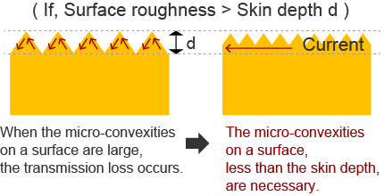 Especially the current in the high-frequency range tends to concentrate in the surface area of the conductor, then the micro-convexities on a surface give a big influence to the transmission loss.