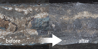 従来のブラスト工法と異なり産業廃棄物の排出量が極めて少なく環境負荷の低減を推進