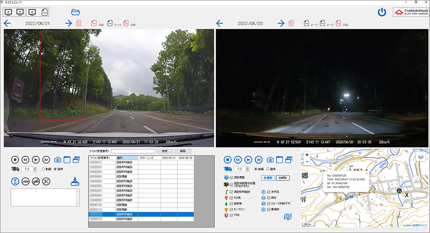 位置情報をもとに、道路照明が映る短尺の動画を切り出します。昼間と夜間の短尺動画を比較するだけで、不点灯の照明を簡単に把握することが可能です。
