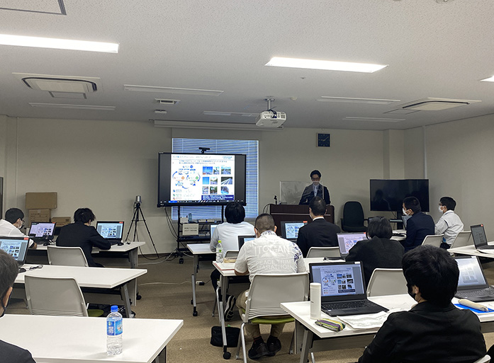 当日は国土交通省 地方整備局(近畿,中国,九州,四国)、内閣府沖縄総合事務局など、対面だけでなくオンライン参加の方を含めて多くの方に、「道路附属物の効果的なメンテナンスサイクルを実現する古河電工のデジタル・トランスフォーメーション」について熱心にご聴講いただきました。研修後は参加者から、たくさんのご意見・ご質問をいただき、紙ベースの設備台帳をデジタル化することについて改めてご要望が多いと認識できました。