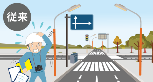 しかし、膨大な数の附属物を調査するには人手や費用が大きな負担となり、地方自治体をはじめとする多くの道路管理者様の悩みの種となっていました。