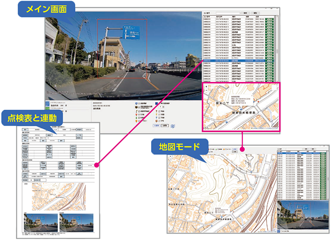「みちてんスナップ」は、道路情報に特化した独自のRPA(注)技術により、ドライブレコ―ダーの映像から附属物の位置や属性を検出、定期点検の記録様式である点検表を自動作成します。