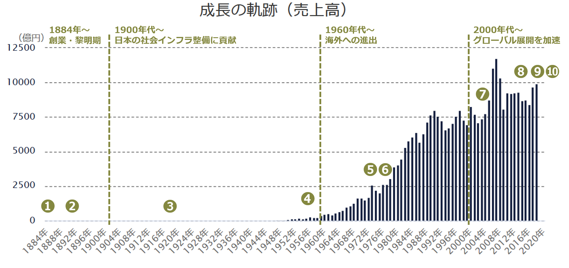 130年を超える古河電工グループの歴史は、社会に貢献してきた歴史そのものです。古河グループの創業者である古河市兵衛は、「日本を明るくしたい」という想いで日本づくりに邁進し、広い視野と高い倫理観で、大きな理想にチャレンジしてきました。古河電工グループは、その思いを受け継ぎ、社会基盤に関する領域を中心に、社会の成長を支えてきました。これからも絶え間ない技術革新によって、地球環境を守り、安全・安心・快適な生活を実現するために情報・エネルギー・モビリティが融合した社会基盤を創りだすことを目指してまいります。