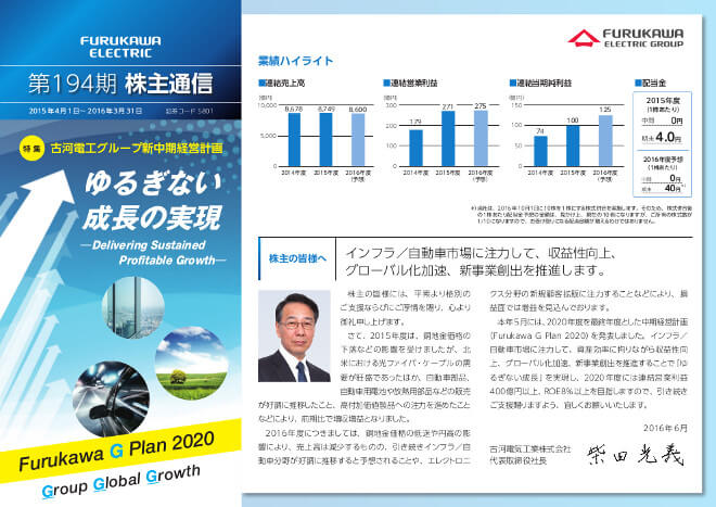 Home> IR情報> IR資料室> 株主通信> 株主通信(2016年3月期)