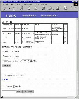 | F-BOXの設定は,生徒向けから高度なシステム管理 者向けまですべてWEBブラウザで簡単に行えます。 各サーバのログ管理や設定ファイルの管理もWEBブ ラウザから可能です。 |