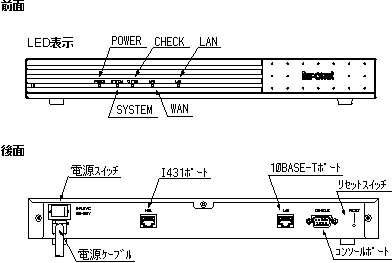 | WAN | 一次群インタフェース(PRI)×1 高速ディジタル専用線(192kbps〜1.5Mbps)または フレームリレー(192kbps〜1.5Mbps) |