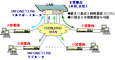 INFONET3790は、複数のWAN回線を利用しISO8802-3LAN間を集約して接続