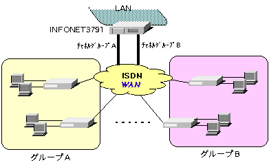 本装置では、ISDNの複数のチャネルに対して共通のサブアドレスあるいはダイヤルイン番号を割り当てることができるチャネルグループ機能をサポートしています。