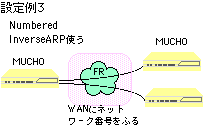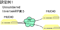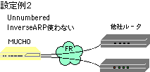 | InverseARP: | フレームリレーの接続相手のアドレスを、PVC確立時に自動的に学習する機能です。MUCHOでは、InverseARPをサポートしていますので、MUCHOどうしを接続する場合や、相手装置がInverseARPをサポートしている場合、dlciコマンドでのremoteaddr設定は必要はありません。 |