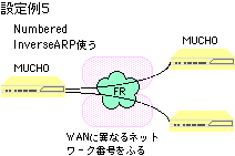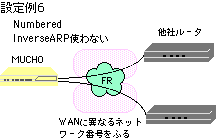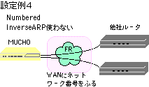 | Numbered: | WAN回線にネットワークを割り当てる運用形態のこと。interfaceコマンドでのtype設定では、broadcastと記入します。また、dlciコマンドでのlocaladdr設定では、自局のWAN側のアドレスを記入します。 |