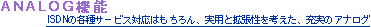 | アナログ機能 | フレックスホン、疑似フレックスホン、ダイヤルイン、INSボイスワープ、INSなりわけサービス、ダイヤルQ2パスワード機能、短縮ダイヤル、追っかけ転送、発信者番号通知、グローバルセレクト、サブアドレス、ダイヤル完了タイマ、ボリューム調整、追加呼出遅延(ベル回数)、フッキング、内線呼出ベル音、切断音制御、識別着信、FAX無鳴動、ベル周波数、発信者番号優先着信、コールバック、中継機能、再ダイヤル、内線通話、通信中機器移動、内線転送 | |