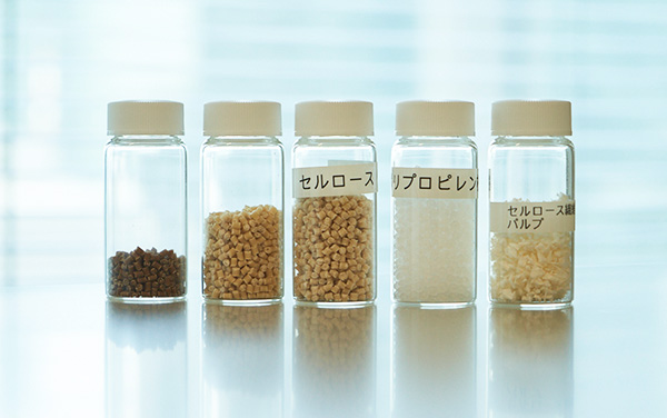 伊倉「植物由来のセルロース繊維と樹脂を混ぜ合わせて作った『セルロース繊維強化樹脂』です。昨今、持続可能な社会の実現に向けてプラスチックの使用量を削減していくことが大きな課題となっています。リサイクルなどに関する法律上の枠組みが整備されていく中、私たちメーカーはカーボンニュートラルにつながる実際の製品開発を進めている段階。そうして開発された製品の一つがCELRe®です」