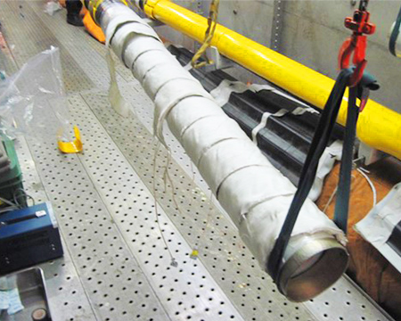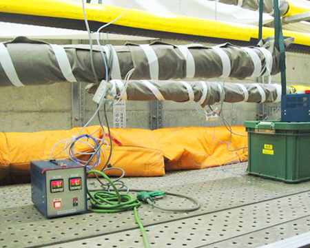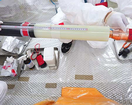 接続作業では、ケーブルが真っ直ぐでなければならないため、ケーブルに熱を加え真っ直ぐに矯正する「直出し」を行い、接続に必要な直線長を確保します。