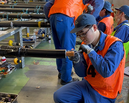 電力ケーブル業界においては、ケーブルメーカーがケーブル・接続部品の製造からケーブルの敷設・接続施工までを一貫して担っていますが、その中で接続施工を担うJOINTERと呼ばれる技能者は業界全体でもおよそ200人しかいません。さらに、超高圧ケーブルの接続施工は業界内でもわずかな人しか対応できない、非常に希少性の高い業務となっています。JOINTERは、そんな電力インフラを支えるスペシャリストなのです。