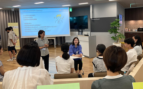 実際に技術を体感し、働く人たちを間近に見ることで「技術やものづくりを通じて働くってどういうことだろう?」と、自分事として考えてもらえるようなプログラムを組みました。また、ダイバーシティの一環として、女性の技術系職種への進出を後押したいという思いから、女性社員の生の声を聞いてもらうパネルディスカッションもプログラムに入れています。