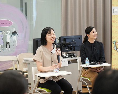 リコチャレの趣旨に沿って、これから進学、就職という岐路に立つ学生の参考にしてもらいたいと、若手の女性技術社員が各日2名ずつ登壇しました。