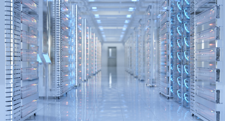 スマホから外へ出たデータは、基地局を通り、やがて世界の大動脈であるデータセンタ(AIサーバ)へ向かいます。ここは、想像を超えるデータ量が流れ続ける場所。止まることなく24時間365日、常に稼働し続けています。