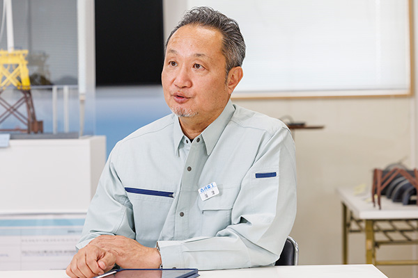 「当社は、2003年に北海道に建設された日本初の洋上風車の海底ケーブル工事を受注しました。その頃から、既にヨーロッパでは洋上風車が盛んになっていたため、日本にもその波がすぐに来るだろうと個人的に考えていました。しかし、実際には日本での洋上風力発電所の開発は予想よりも遅れ、その転機となったのが、東日本大震災でした。今回の建設工事は、“日本もようやくここまできたのか”という感慨が大きかったです」
