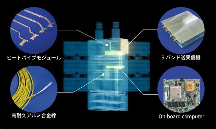 - ヒートパイプモジュール、Sバンド送受信機、On-board computer、高強度アルミ電線の宇宙実証