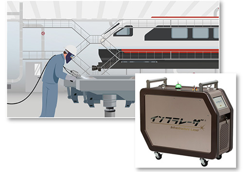 インフラレーザとは、インフラの現場にてレーザでの金属表面の塗膜剥離、錆取り、油落とし等を実現する製品です。 重量物運搬ドローン