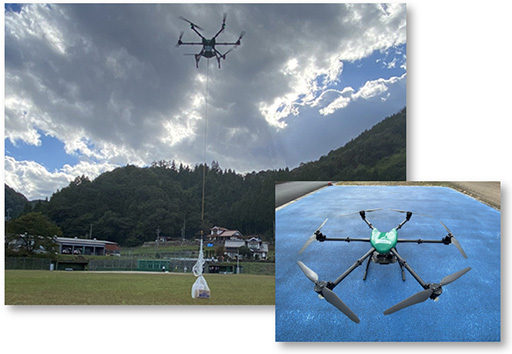 重量物運搬ドローンは、山岳地帯など重量物の運搬が難しい箇所への運搬の負荷軽減を実現します。機体は最大75kg、49kgの2タイプがあり、既に多数の実績がございます。 |