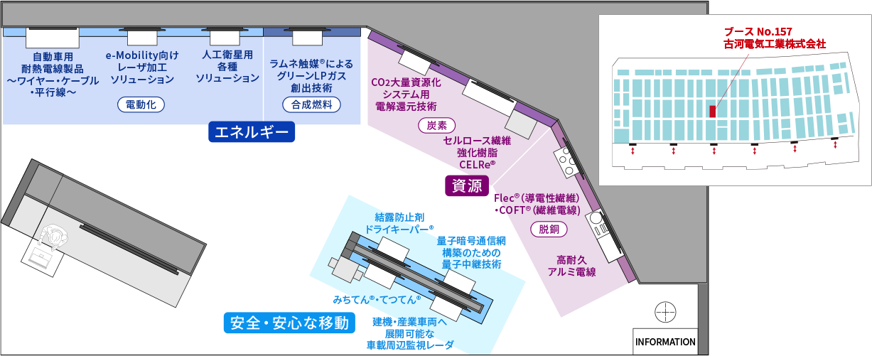 今回の展示会では、「エネルギー問題」「資源循環社会」「安全・安心な移動」の3つのテーマで、持続可能な社会基盤の構築に貢献する取り組みを紹介します。