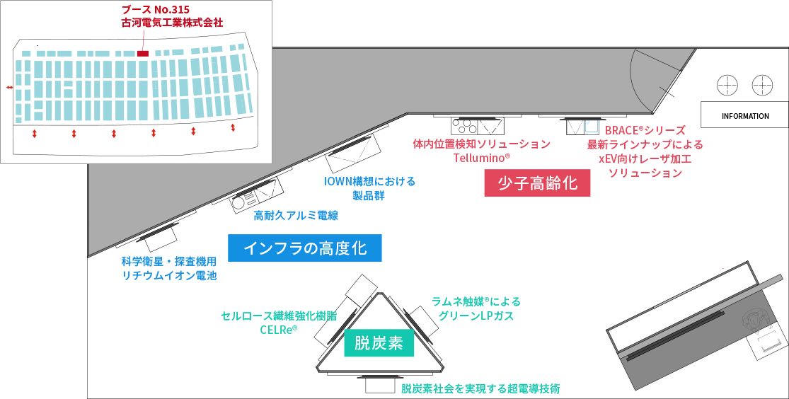 今回の展示会では「脱炭素」「少子高齢化」「インフラの高度化」の3つの将来テーマで、社会基盤の構築に貢献する取り組みを紹介します。